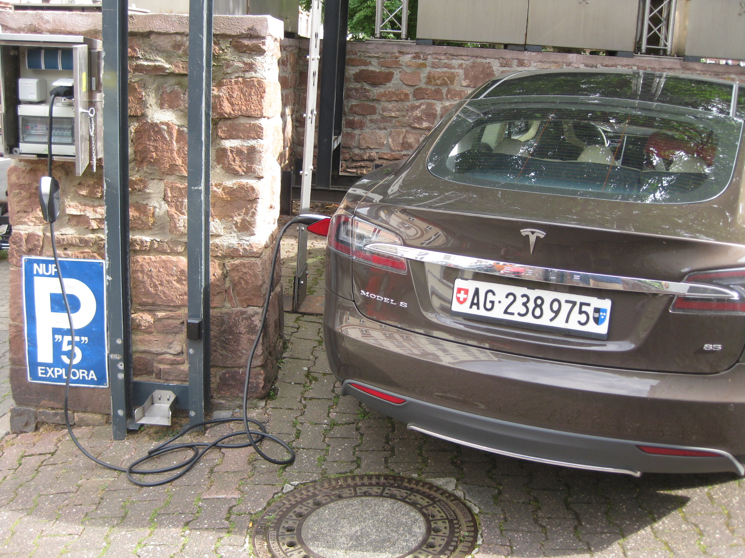 EBENE1 Außenterrasse kostenlose Elektrotankstelle aus erneuerbaren Energien - TESLA S